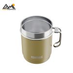 دستهی استیل مقاوم این ماگ بهگونهای طراحی شده که هم حس استحکام و کنترل بهتر در دست ایجاد کند و هم امکان آویزان کردن ماگ به کوله یا کمربند با کارابین را داشته باشد.
