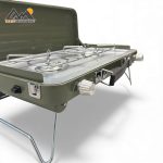 طراحی پایههای جمعشونده، قفلهای جانبی درب، و دسته مقاوم حمل باعث میشود این محصول بهراحتی جمع شده و در سفر قابل حمل باشد. همچنین در یکطرف این اجاق کلید احتراق پیزوالکتریک برای روشن کردن شعله ها فراهم شده است.