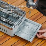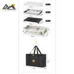 همراه محصول یک صفحه حرارتی، یک گریل آلومینیومی، یک توری گریل از جنس استیل ضدزنگ و یک کیف حمل از جنس اکسفورد ارائه میشود. طراحی تاشو و قابلیت جمعشدن دستگاه در ابعاد کوچکتر، حمل و بستهبندی آن را راحتتر کرده است. این اجاق با ترکیب قدرت، ایمنی و قابلیتهای چندگانه، گزینهای کامل برای آشپزی در سفر و طبیعت محسوب میشود.