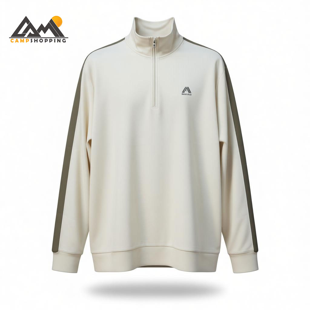 • یقه ایستاده نیم‌ زیپ برای تهویه و تنظیم دما