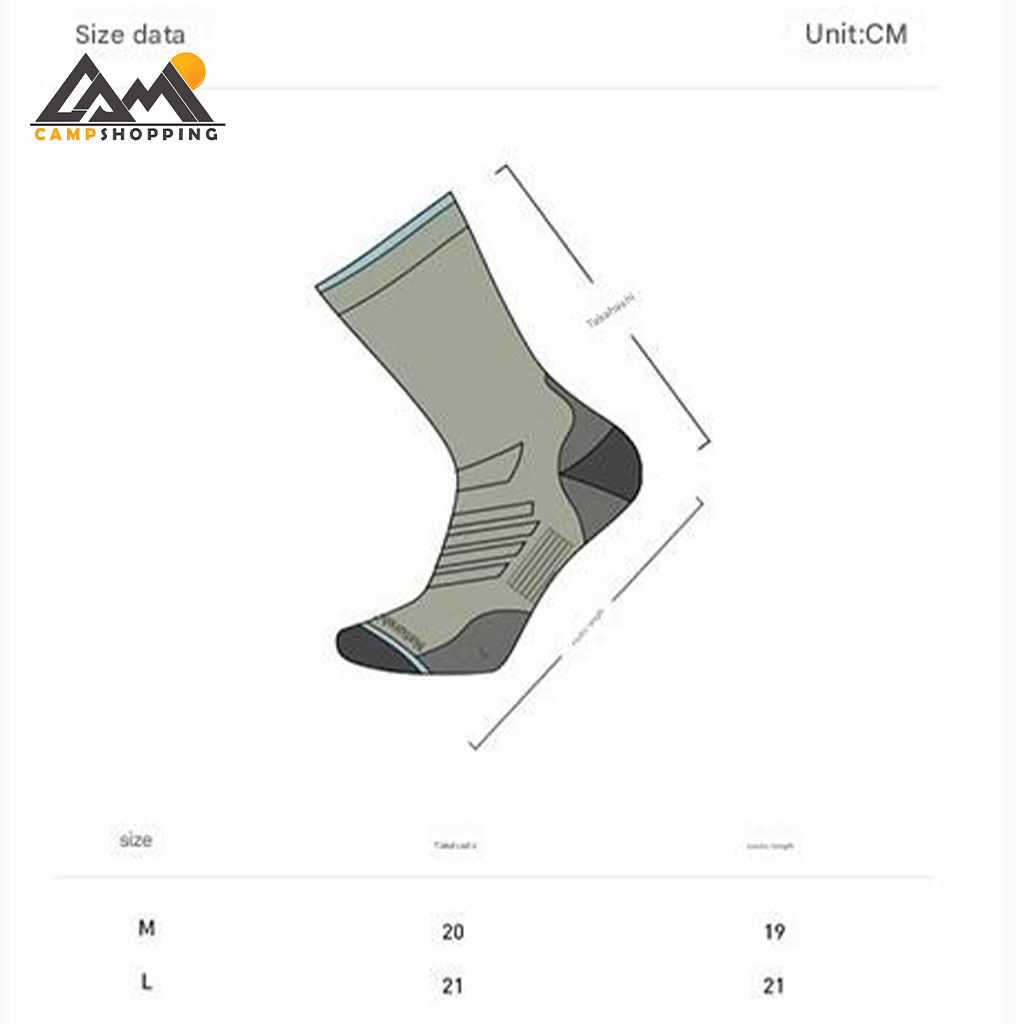 جوراب CYY2421FS017 با ساق متوسط و وزن سبک، برای طیف وسیعی از فعالیتها از جمله کوهنوردی، ترکینگ، پیادهروی، کمپینگ و استفاده روزمره در هوای سرد مناسب است.
