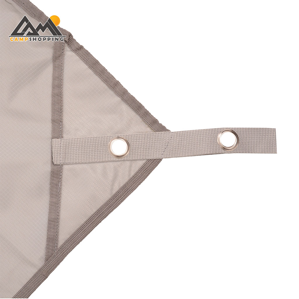 طراحی حرفهای زیرانداز شامل دوخت مقاوم و تقویتشده در کنارهها است تا طول عمر محصول افزایش یابد و در برابر کشش یا وزن بیشتر مقاومت داشته باشد. همچنین در هر سمت زیرانداز، دو عدد حلقه پانچ تعبیه شده که میتوان از آنها برای ثابت کردن زیرانداز روی زمین یا اتصال طناب استفاده کرد؛ مزیتی مهم هنگام وزش باد یا استفاده روی زمینهای ناهموار.