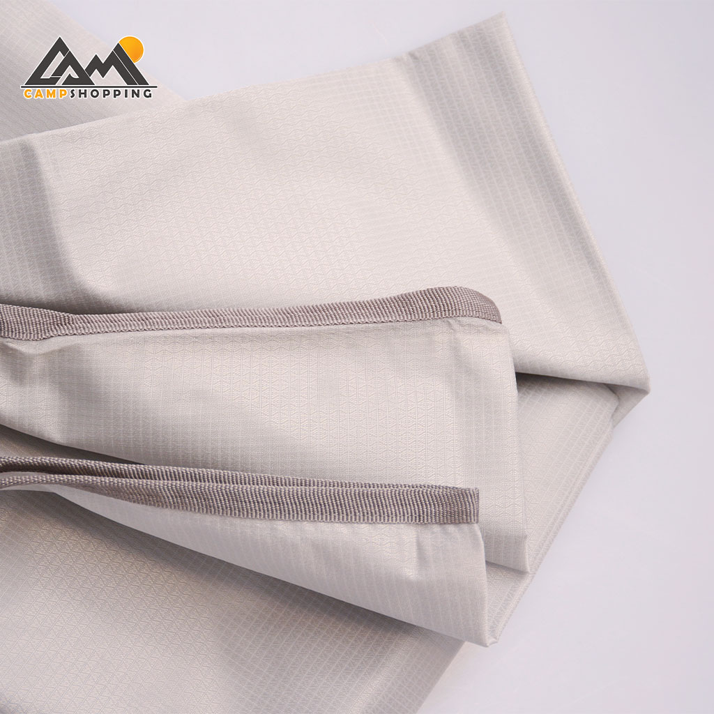 جنس این زیرانداز از پلیاستر با پوشش PU ساخته شده است؛ ترکیبی سبک، مقاوم در برابر سایش و کاملاً ضدنفوذ آب که اجازه نمیدهد حتی در زمینهای مرطوب، چمن خیس یا خاک بارانی، رطوبت به چادر برسد. این ویژگی برای سفرهای طولانی و کمپهای شبانه بسیار ضروری است.
