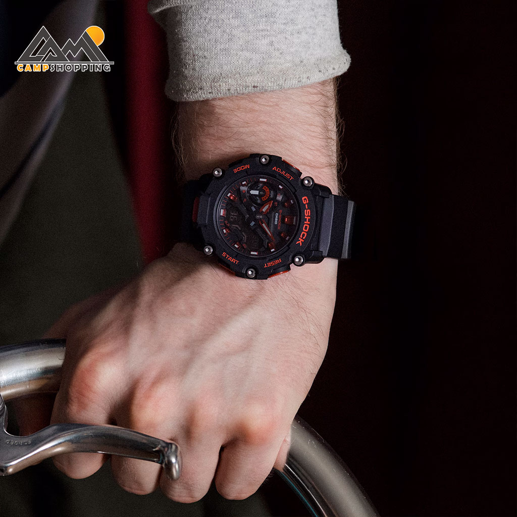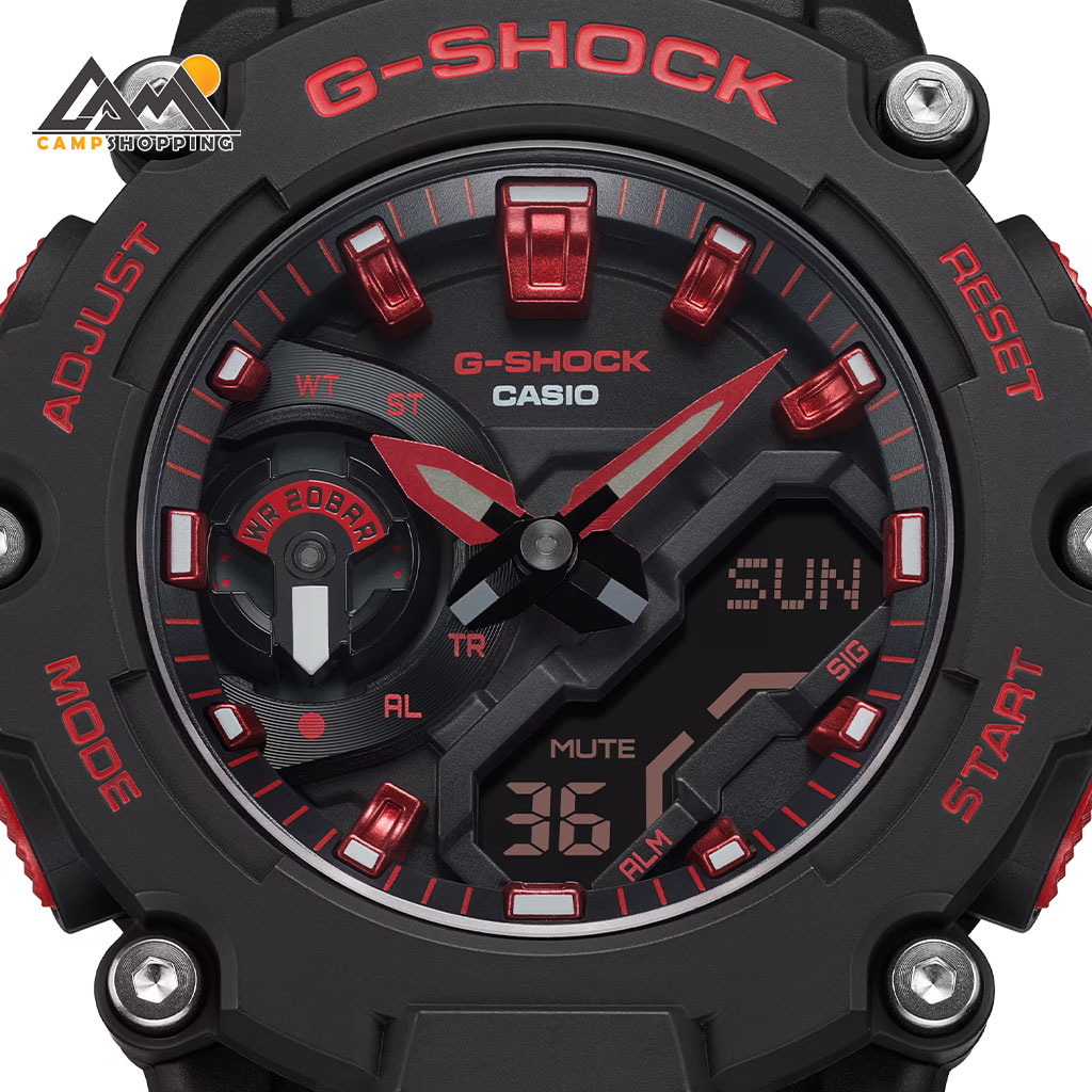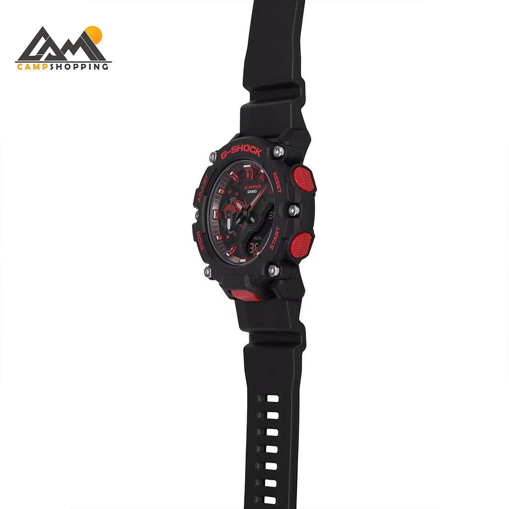 ساعت کاسیو سری G-SHOCK مدل GA-2200BNR-1ADR با طراحی جسورانه و ترکیب رنگ مشکی و قرمز، تصویری از قدرت، اعتمادبهنفس و مقاومت مطلق را به نمایش میگذارد. این مدل بخشی از سری Ignite Red Line است که روح پرشور برند G-SHOCK را در قالب رنگهای نمادین خود به نمایش میگذارد. طراحی بدنه با ساختار Carbon Core Guard ضمن کاهش وزن، دوام فوقالعادهای را در برابر ضربه، فشار و شرایط سخت فراهم کرده است.
