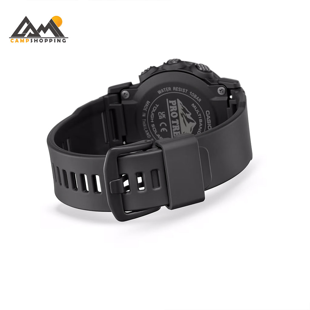 در قلب این مدل، سنسور سهگانه کاسیو (Triple Sensor) قرار دارد که سه قابلیت کلیدی را در اختیار شما میگذارد: ارتفاعسنج تا 10000 متر، فشارسنج با نمودار تغییرات 42 ساعته، قطبنما با دقت بالا و کالیبراسیون دوبل، دماسنج با بازهی 10- تا 60+ درجه سانتیگراد.