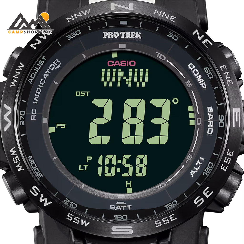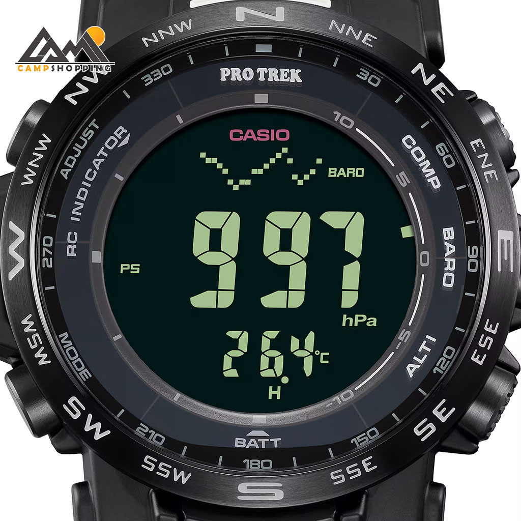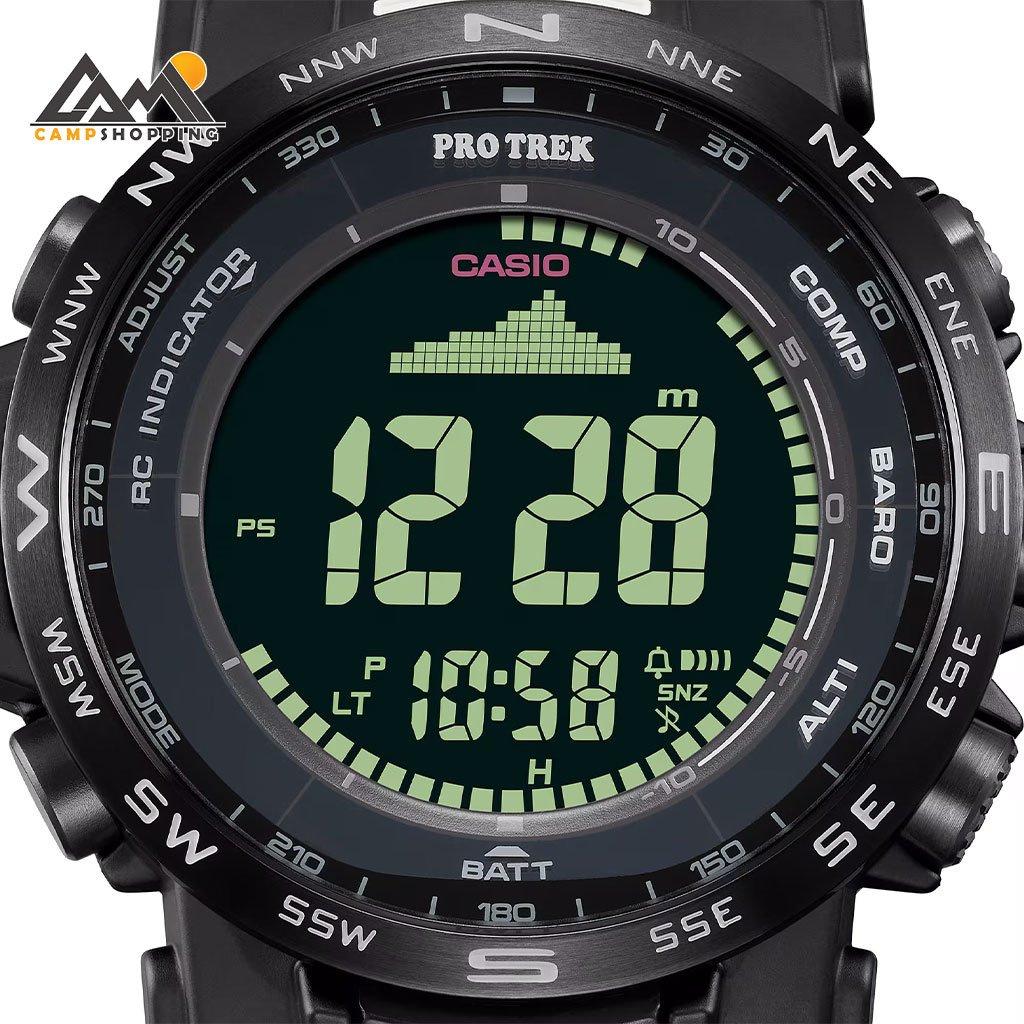 ساعت PRW-35 دارای صفحهنمایش Super Twisted Nematic (STN) LCD با خوانایی بالا در شرایط نوری مختلف است. نور پسزمینه LED Super Illuminator نیز در تاریکی وضوحی عالی ایجاد میکند. مقاومت در برابر دما تا منفی 10 درجه سانتیگراد و ضدآب تا عمق 100 متر (10 بار فشار) از این مدل ابزاری کامل برای کوهنوردی، طبیعتگردی، صخرهنوردی و حتی سفرهای شهری میسازد.