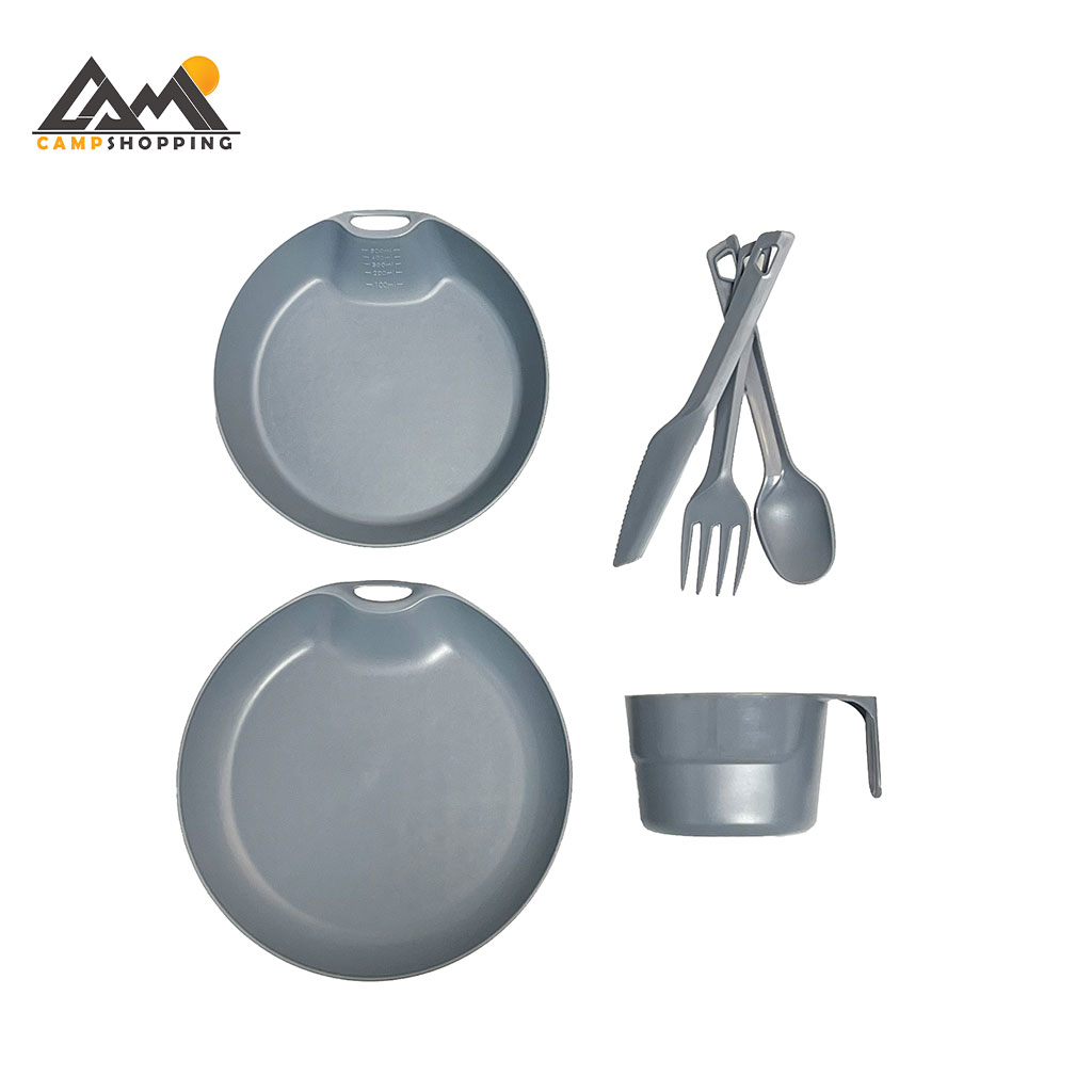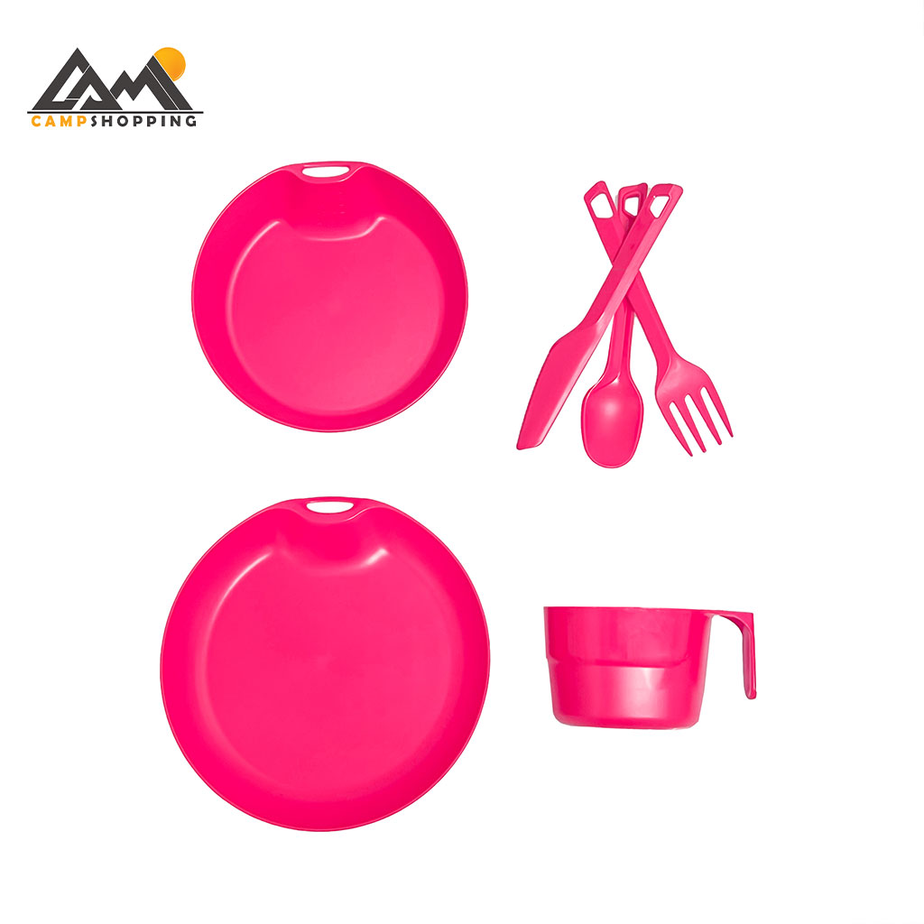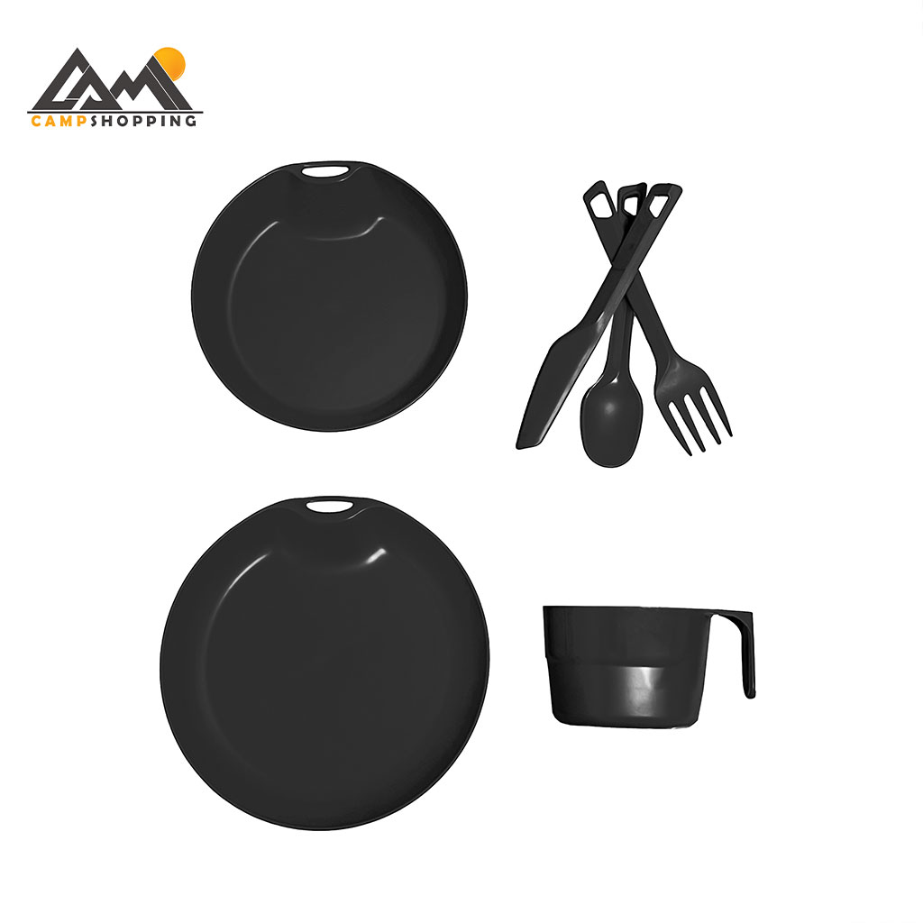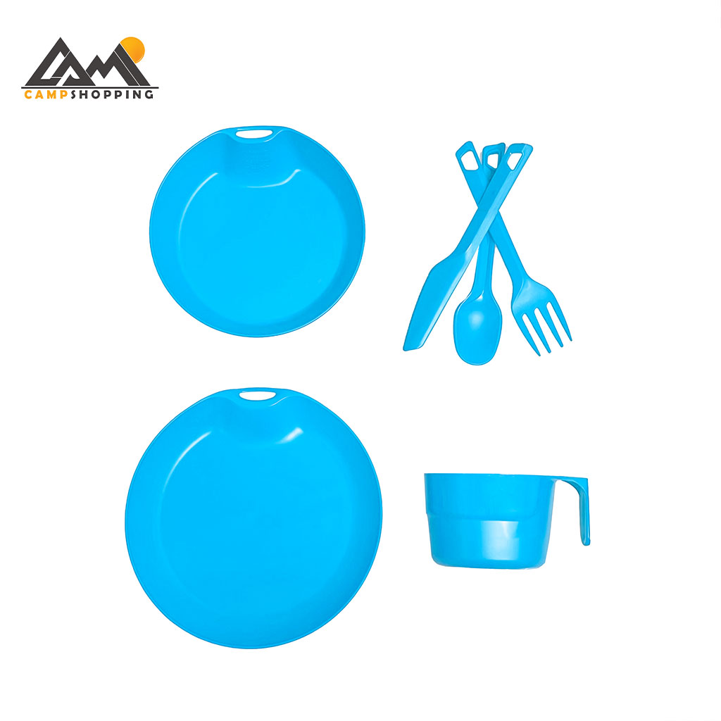 در این مجموعه، یک بشقاب لبهدار (19×1.8 سانتیمتر) برای سرو انواع غذاهای مایع و جامد، یک کاسه (16.2×3 سانتیمتر) با ظرفیت 500 میلیلیتر برای سوپ، سالاد یا برنج، و یک کاپ نوشیدنی قرار دارد. همچنین یک کارد غذاخوری برای برش انواع مواد غذایی و یک ست قاشق و چنگال ارگونومیک با طراحی دقیق برای صرف آسان غذا در محیطهای بیرونی در نظر گرفته شده است.