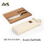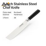 چاقوی 8 اینچی موجود در این ست از فولاد کربنی با سختی 58HR (راکول) ساخته شده؛ تیز، مقاوم، بادوام و ایدهآل برای برش دقیق انواع مواد غذایی.