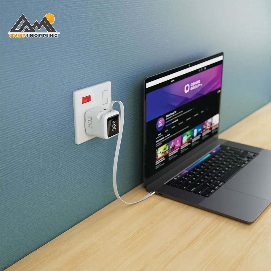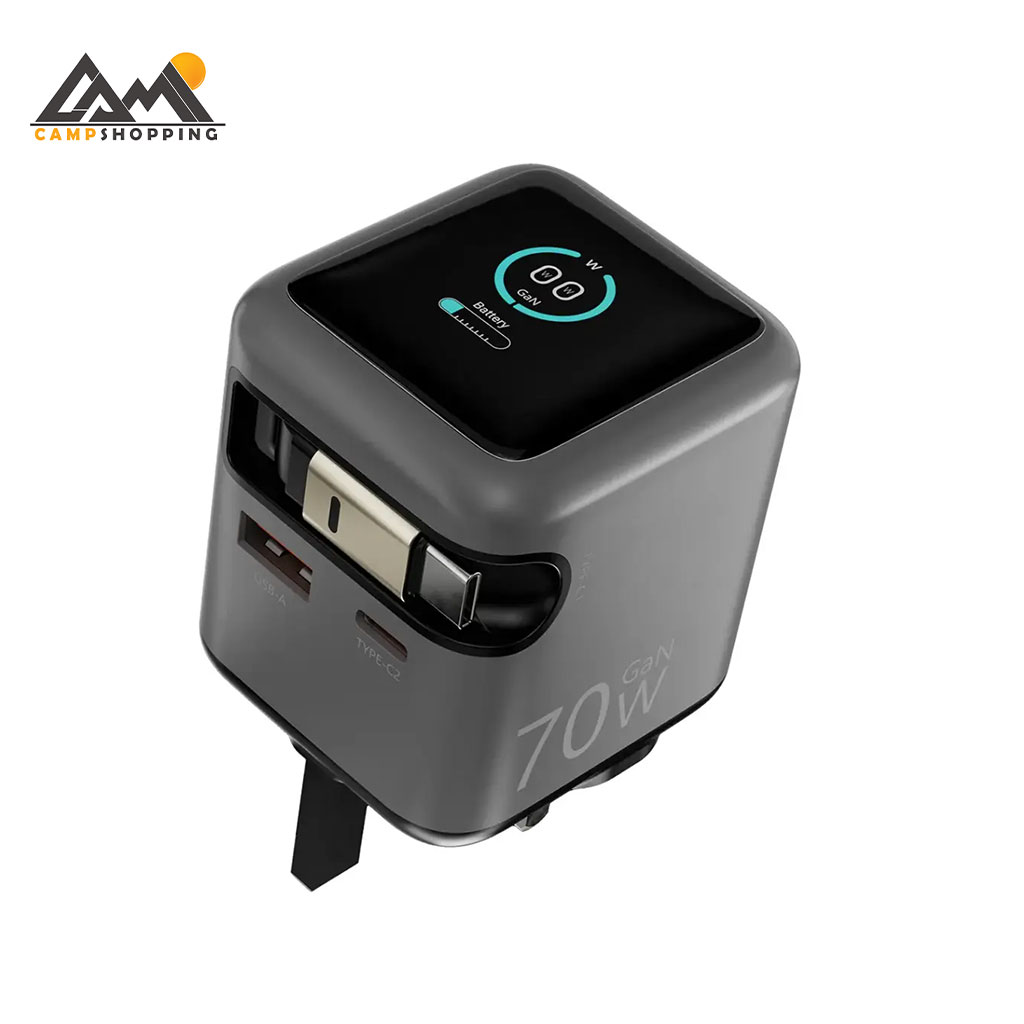 یکی از ویژگیهای خاص این مدل، وجود کابل Type-C جمعشونده 80 سانتیمتری است که حمل و استفاده از آن را بسیار راحت کرده و از گره خوردن کابل جلوگیری میکند. همچنین با پشتیبانی از شارژ همزمان 3 دستگاه (USB-C داخلی + USB-C2 + USB-A)، انعطاف بالایی در استفاده روزمره دارد.