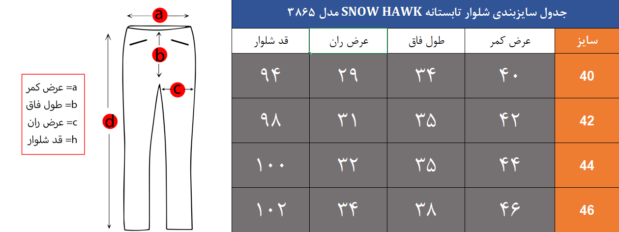 مشخصات شلوار تابستانه اسنوهاک کد 3865