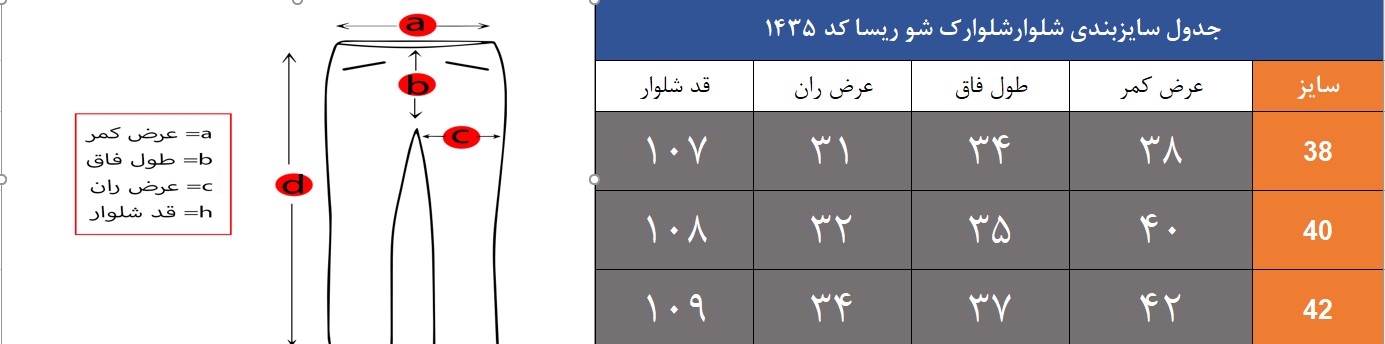 مشخصات شلوار شلوارک شو ریسا کد 1435