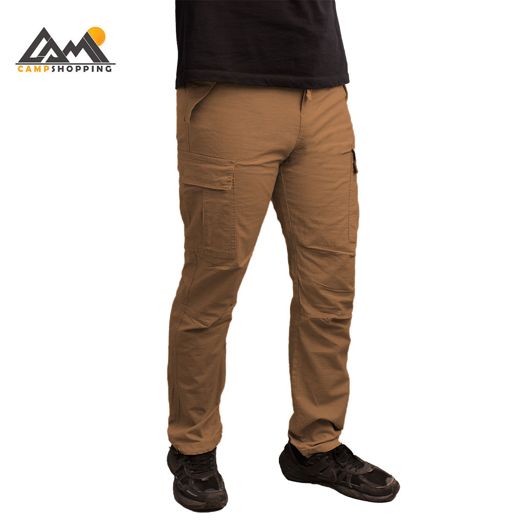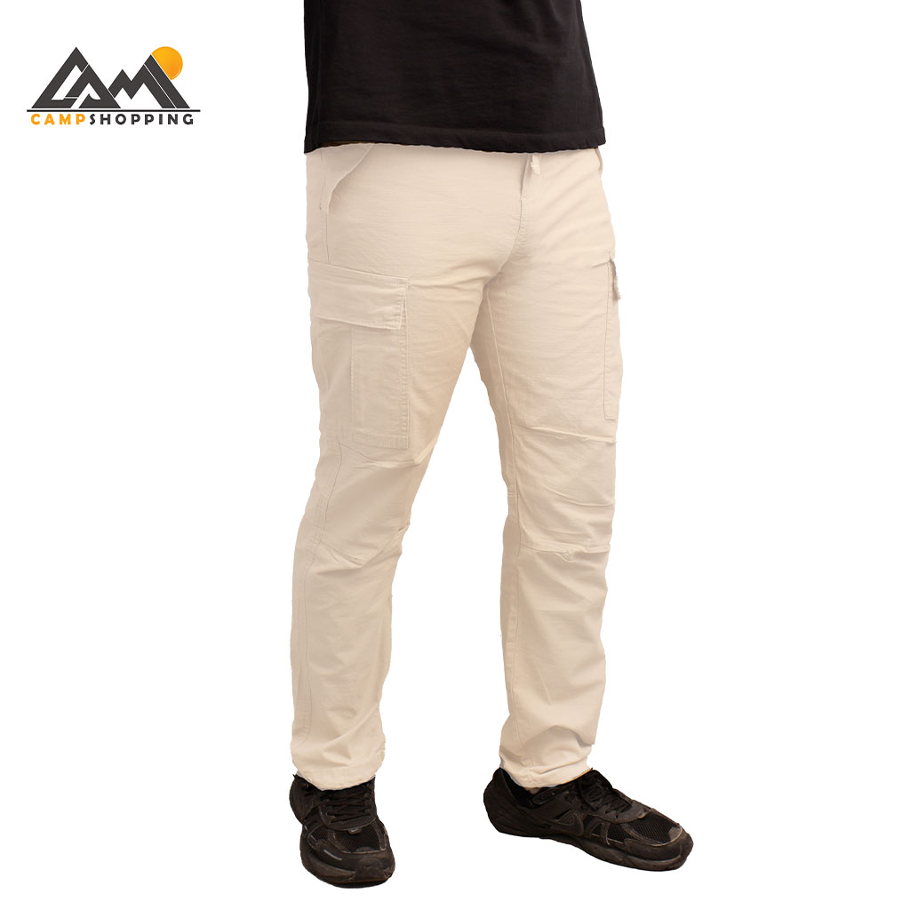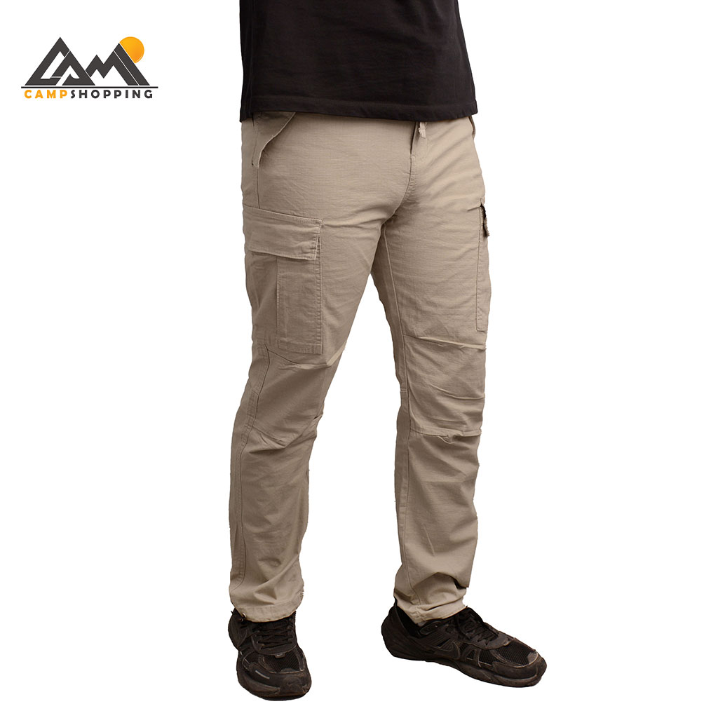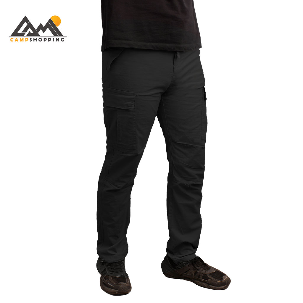 این شلوار دارای 6 جیب کاربردی است: دو جیب مورب جلو برای دسترسی سریع، دو جیب پشتی با درپوش دکمهدار برای امنیت بیشتر، و دو جیب کارگو کناری با زیپ مخفی برای لوازم ضروری مثل پاوربانک یا ابزار کوچک. وجود این تعداد جیب، آن را به یک شلوار کارآمد برای ماجراجویی و استفاده روزمره تبدیل کرده است.