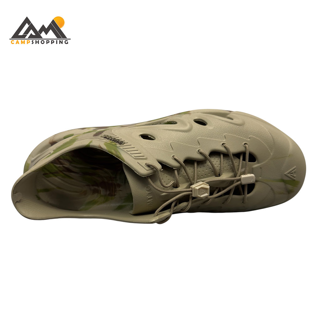 رویه و زیره از جنس EVA مقاوم و سبک ساخته شدهاند که علاوه بر استحکام در برابر سایش، وزن کمی دارند و باعث میشوند در طولانیمدت احساس خستگی نکنید. سیستم بندکشی همراه با فیکساتور، امکان تنظیم سریع و دقیق صندل را فراهم کرده و از لغزش پا در حین حرکت جلوگیری میکند.