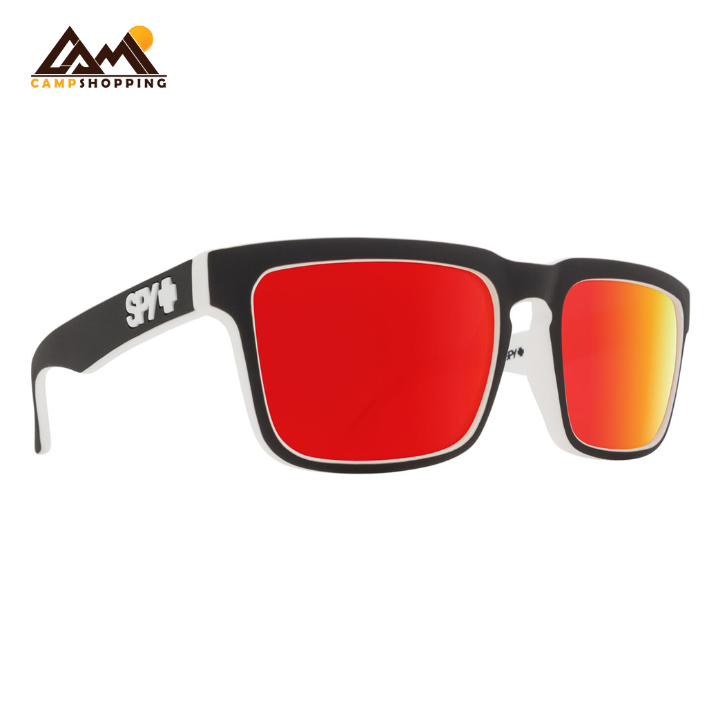 عینک اسپای سری HELM کد 9365 دارای فریم مشکی – سفید رنگ ساخته شده از پلاستیک و لنزهای کروی آینه ای به رنگ قرمز و ساخته شده از پلی کربنات است.