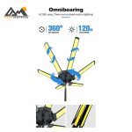 بدنه مقاوم این چراغ مطابق با استاندارد IPX4 در برابر پاشش آب مقاوم است. همراه این محصول یک پایه تلسکوپی فلزی ارائه میشود که امکان افزایش ارتفاع را فراهم کرده و باعث پوشش وسیعتر نور میشود. این ویژگی آن را به گزینهای ایدهآل برای استفاده در طبیعتگردی، سفرهای آفرودی، فضاهای کاری و صنعتی تبدیل میکند.