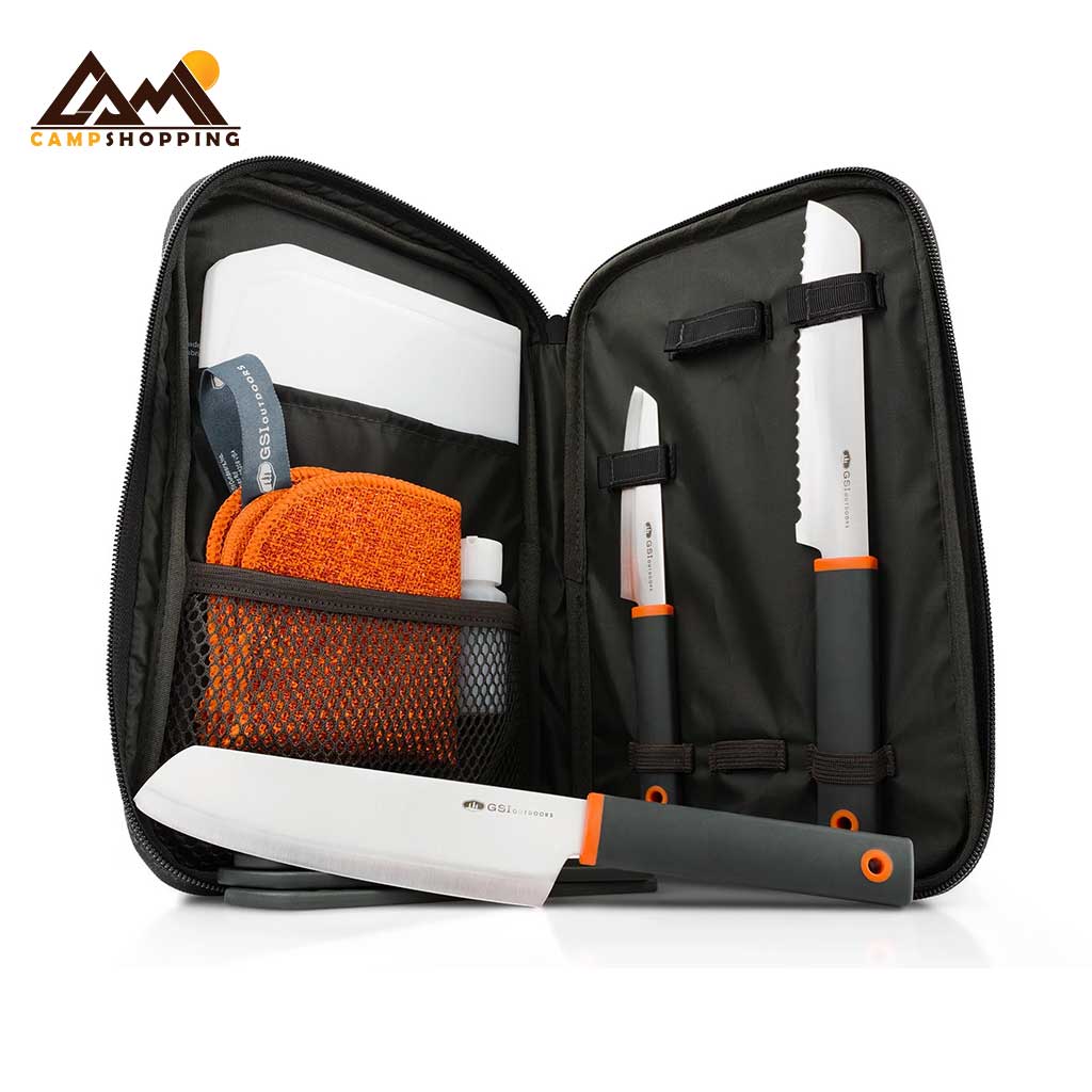 چاقو و تخته برش GSI SANTOKU، مجموعه ای فوق العاده کاربردی و کامل برای آشپزی در طبیعت و منزل است که به علت حجم و وزن کم، به راحتی می توان آن را داخل کوله نیز حمل کرد.