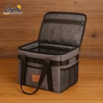 هم چنین در 4 طرف این کیف دستگیره هایی وجود دارد که حمل دو نفره را برای شما آسان می کند. در قسمت بیرونی کیف (روی درب) بندهایی تعبیه شده که می توانید لوازم سبک مورد نیازتان روی آن ببندید. دو جیب توری روی بدنه ی اصلی قراردارد که برای لوازم مورد نیازتان طراحی شده است. در داخل این کیف سه عدد دیوایدر یا پارتیشن وجود داردکه فضای داخلی را برای شما سازماندهی میکند، از دیگر ویزگی های این پارتیشن ها متحرک بودن آن هاست که به شما این امکان را میدهد تا بهترین استفاده را از فضای این کیف ببرید.