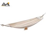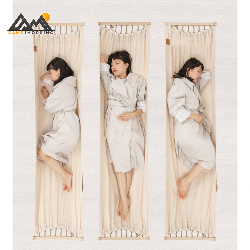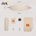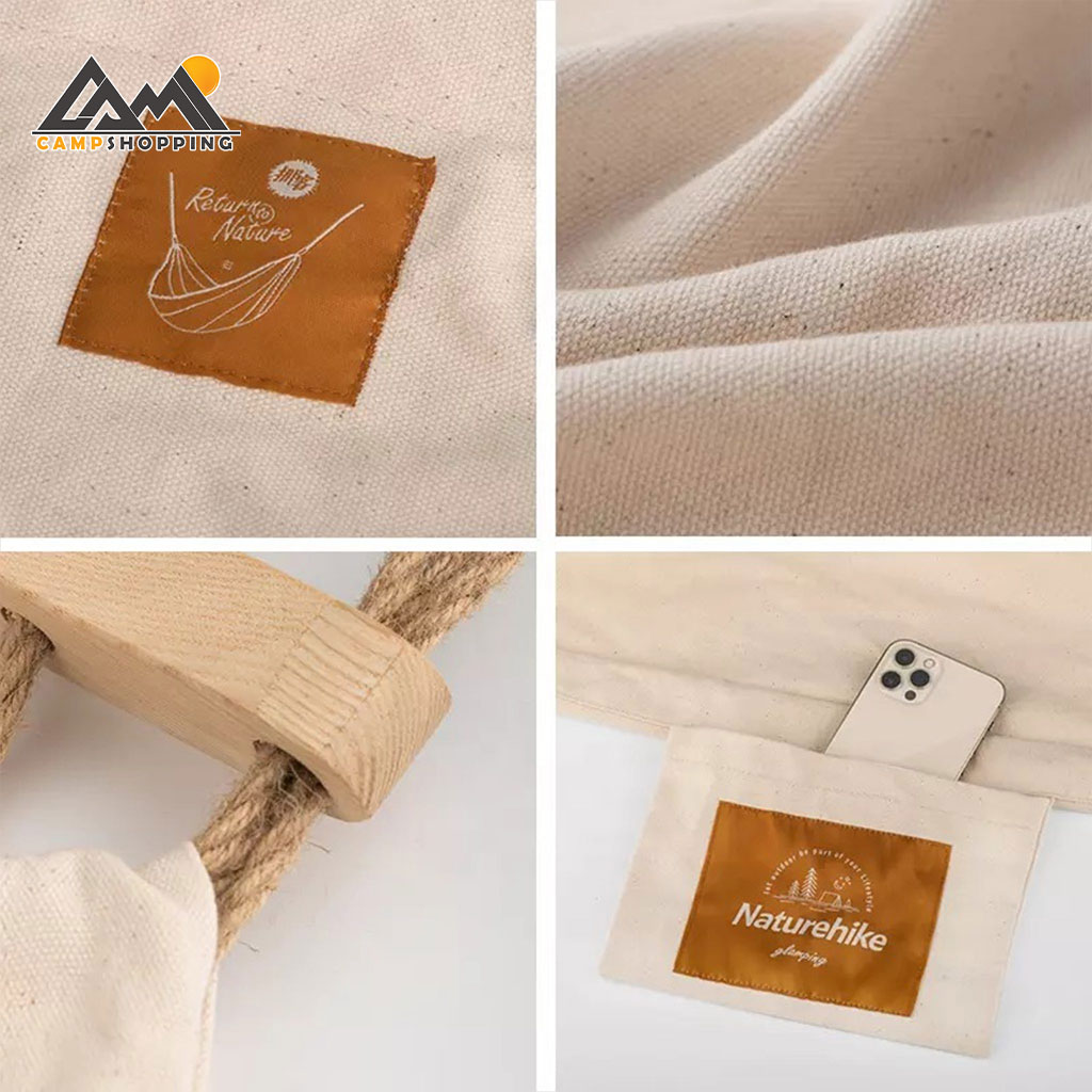 جنس پارچه از کتان برزنتی مقاوم انتخاب شده که ضمن تهویه مناسب، از تعریق جلوگیری کرده و در عین حال مقاومت بالایی در برابر کشش، سایش و پارگی دارد. طراحی ضد واژگونی با میلههای پخشکننده در دو سر ننو، پایداری بینظیری ایجاد میکند و مانع چرخش ناگهانی یا افتادن کاربر میشود.