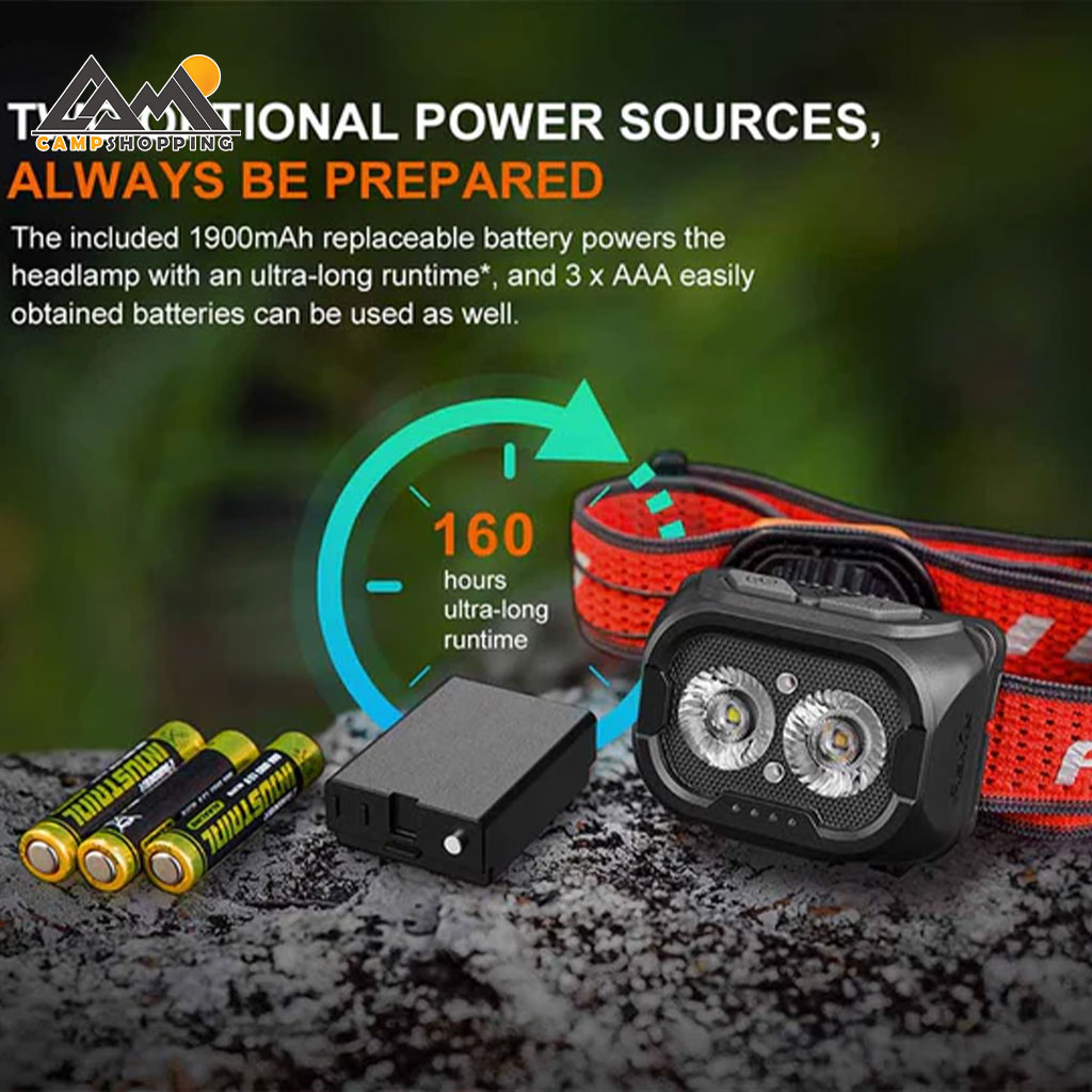 هدلامپ HL18R-T V2.0 به یک باتری لیتیومی قابل شارژ 1900 میلیآمپرساعتی مجهز شده که از طریق درگاه USB-C شارژ میشود. همچنین در صورت نیاز میتوان از 3 عدد باتری AAA نیز استفاده کرد. حداکثر زمان نوردهی این هدلامپ در حالت کممصرف تا 160 ساعت میرسد.