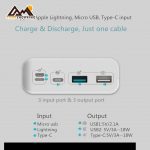 پاوربانک روموس SENSE 8P Plus با ظرفیت 30000 ميلی آمپر ساعت. با پاوربانک 30000 میلی آمپر ساعتی روموس بدون نیاز به پریز برق، باتری گوشی موبایل، تبلت یا آیپد خود را شارژ کنید. روی سطح این پاوربانک، نمایشگر LED وجود دارد که می توانید درصد شارژ آن را مشاهده نمایید. همجنین شما می توانید از این شارژر همراه در طول روز استفاده کرده و در پایان کار میزان باقی ماندهی باتری پاوربانک را ببینید و در صورت نیاز آن را شارژ کنید. برای شارژ کردن باتری به کار رفته در این پاوربانک باید از یک کابل microUSB استفاده کنید. کافی است پاوربانک را با استفاده از کابل به یک شارژر متصل کرده و منتظر بمانید تا باتری آن شارژ شود. این پاوربانک زیبا دارای ورودی و خروجی Type C نیز می باشد.