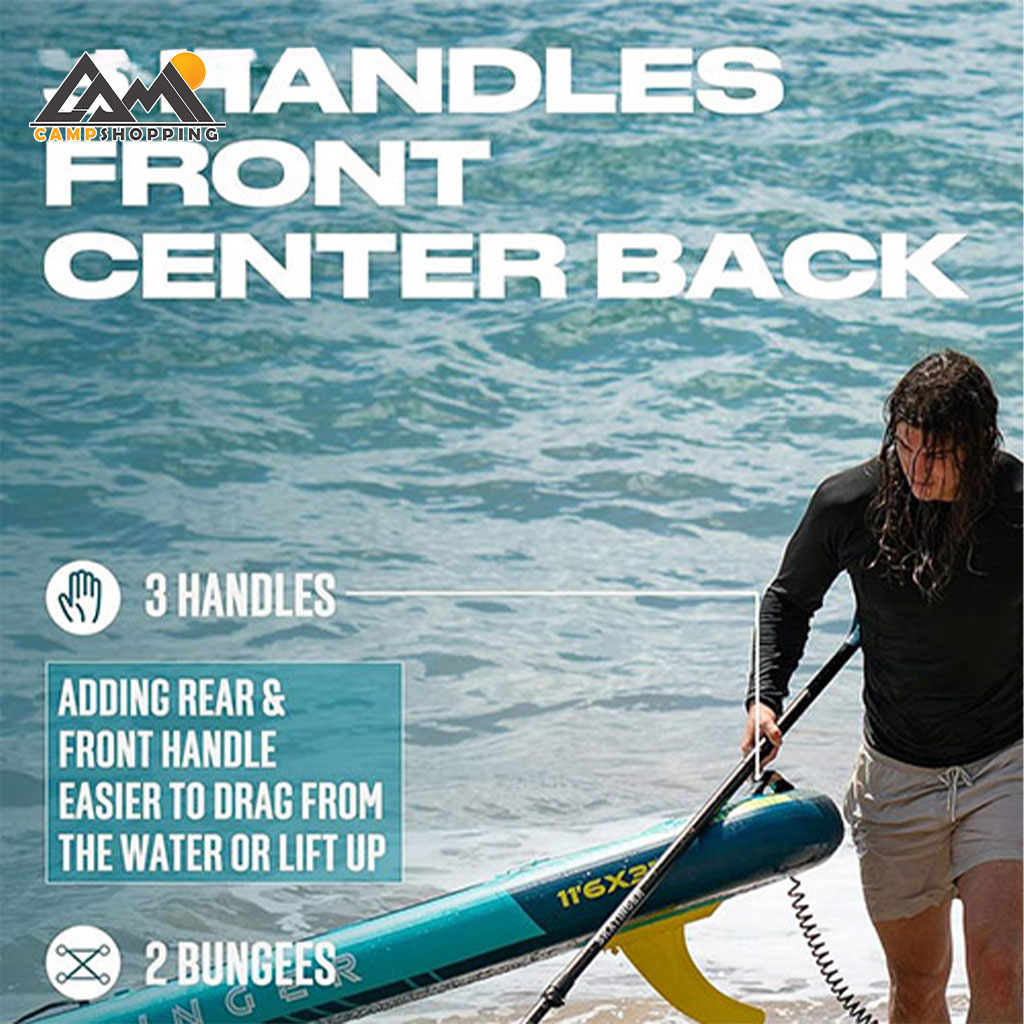 این محصول با مجموعهای کامل از متعلقات ارائه میشود تا کاربر بدون نیاز به خرید هیچ وسیلهی اضافی، بتواند همان لحظه از پدلبرد استفاده کند. پدل قابل تنظیم امکان تنظیم ارتفاع متناسب با قد کاربر را فراهم میکند و تلمبه دستی دو منظوره با قابلیت بادکردن دوطرفه فرآیند آمادهسازی برد را سریعتر میسازد. فین جداشونده پایداری برد را در مسیر کمک میکند و بند ایمنی لیش، امنیت بیشتری را هنگام فعالیت در آب تضمین میکند.