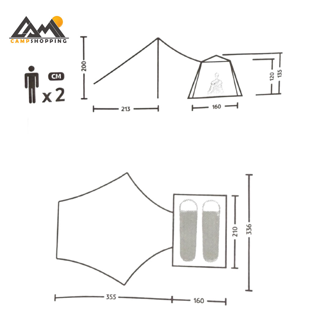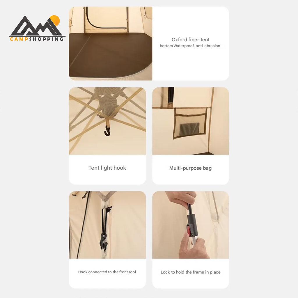 - ابعاد باز شده چادر: W210 × L160 × H120 سانتی متر