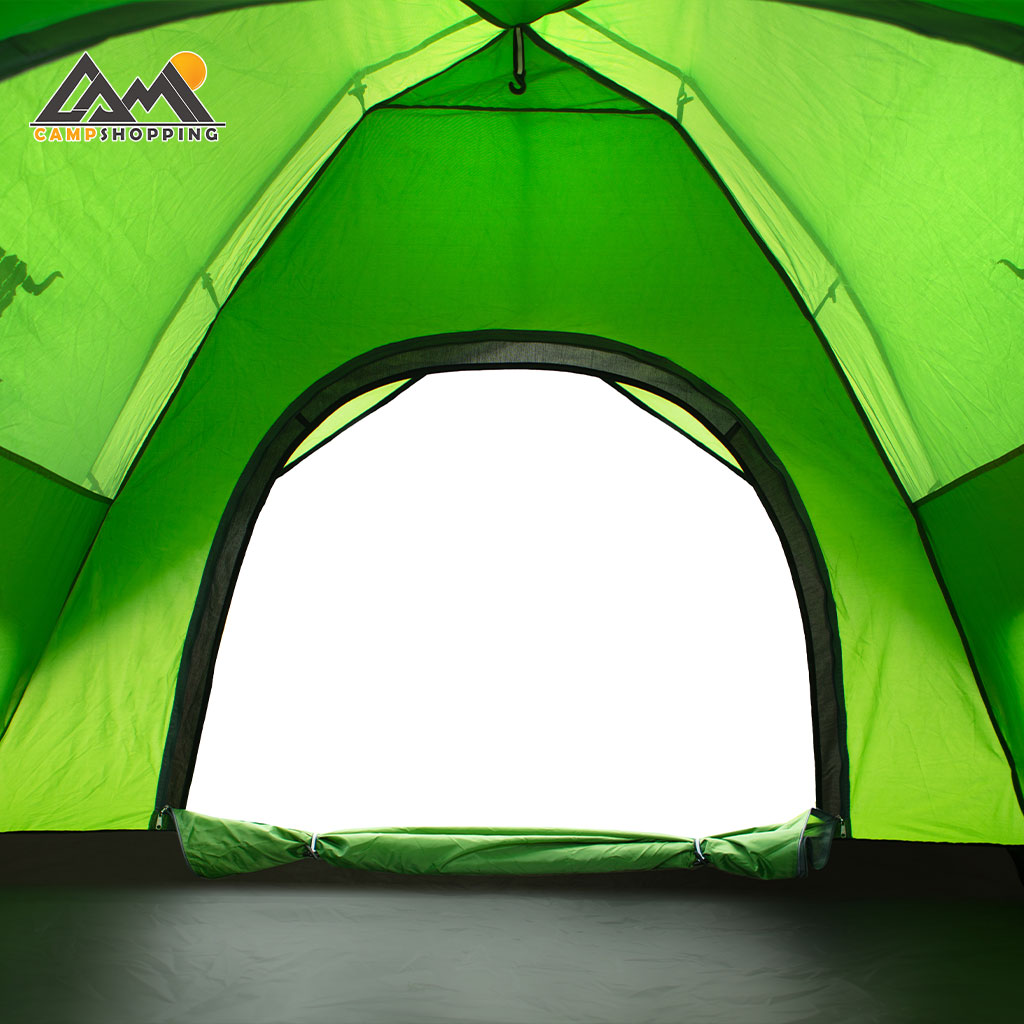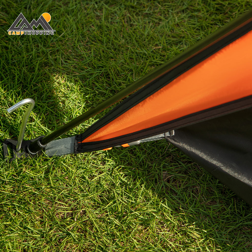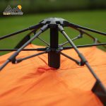 پارچه آکسفورد 210D با پوشش PU و مقاومت 2000 میلیمتر در برابر نفوذ آب در پوش خارجی، داخلی و کف چادر، محافظت مناسبی در برابر باران و رطوبت ایجاد میکند. تیرکهای فایبرگلس اتوماتیک با قطر 8.5 میلیمتر، ساختار چادر را پایدار و مقاوم نگه میدارند.