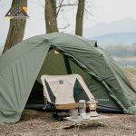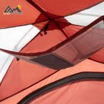 این چادر با استفاده از تیرکهای آلومینیومی 7001 طراحی شده که علاوه بر استحکام بالا، وزن را کاهش داده و پایداری فوقالعادهای در برابر باد ایجاد میکند. پارچه خارجی از Polyester 190T با پوشش PU3000mm ساخته شده و در بارش متوسط تا شدید مقاومت کامل دارد. لایه داخلی نیز از توری B3 بههمراه پلیاستر با پوشش PU450mm ساخته شده که تهویه مناسب و جلوگیری از نفوذ رطوبت را تضمین میکند.