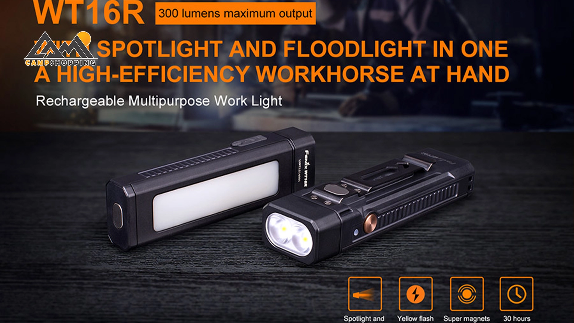 چراغ قوه Fenix WT16R یک چراغ کاری و کمپینگ جمع‌وجور با نور قدرتمند 300 لومن، باتری قابل شارژ، نصب آهنربایی و بدنه مقاوم است که برای استفاده روزمره، فضای باز و شرایط اضطراری طراحی شده است.