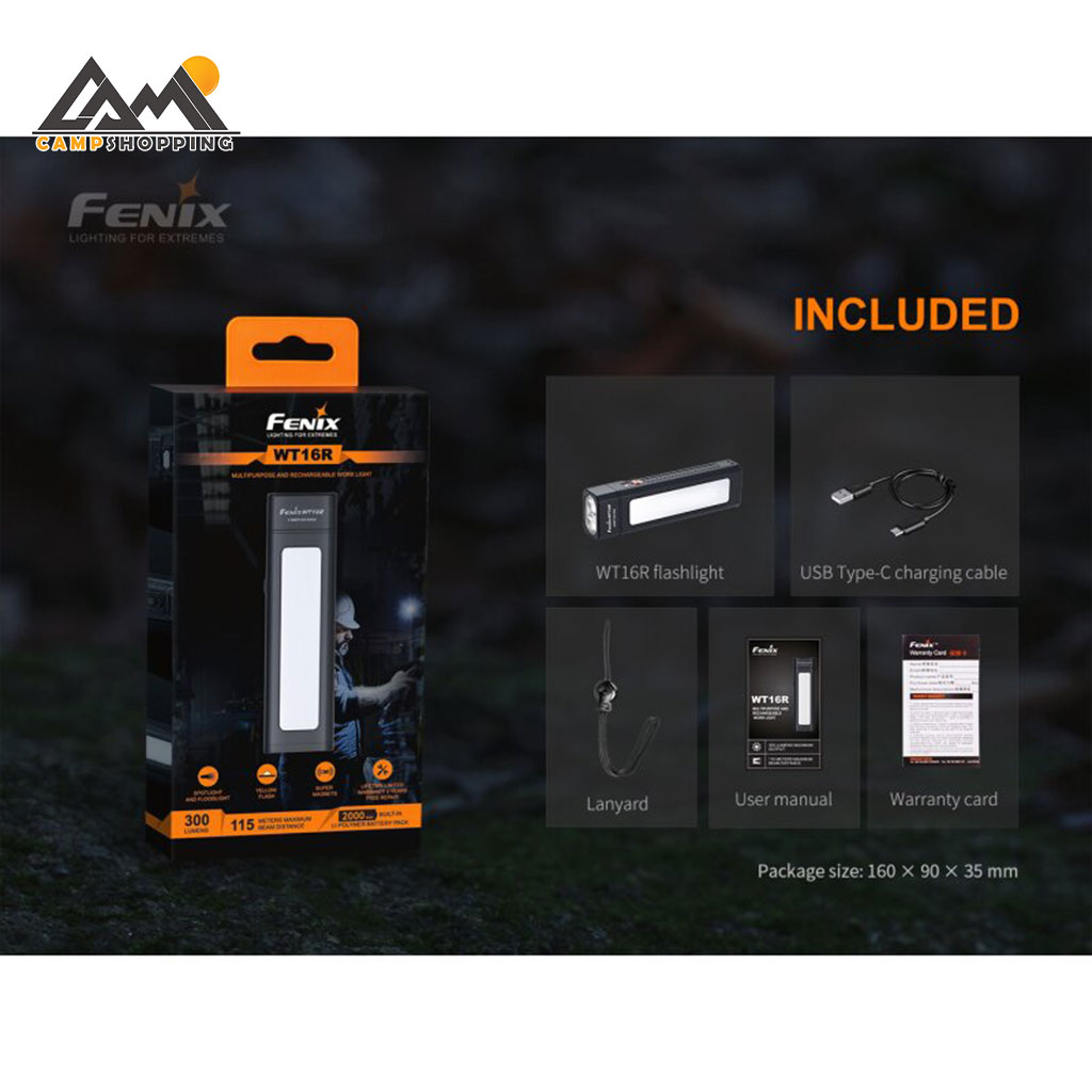 چراغ قوه Fenix WT16R یک چراغ کاری و کمپینگ جمع‌وجور با نور قدرتمند 300 لومن، باتری قابل شارژ، نصب آهنربایی و بدنه مقاوم است که برای استفاده روزمره، فضای باز و شرایط اضطراری طراحی شده است.