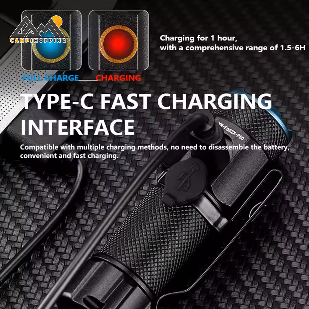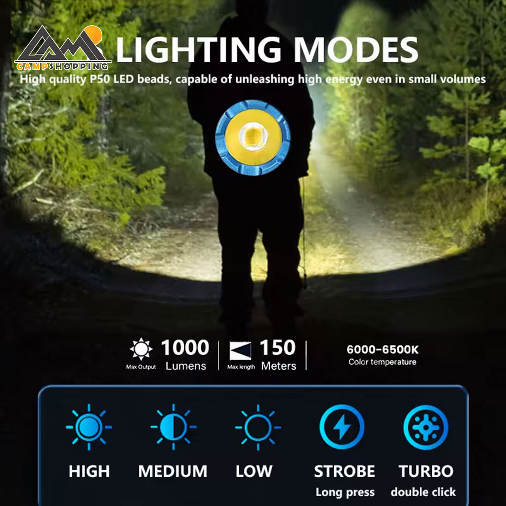 چراغ‌قوه کوچک و قدرتمند YEMAO مدل YM-F602X با بدنه آلومینیومی، روشنایی 1000 لومن، برد نور تا 150 متر، باتری 16340، درگاه شارژ Type-C، آهنربای انتهایی و استاندارد IP65 انتخابی ایده‌آل برای استفاده روزمره، کمپینگ، طبیعت‌گردی و شرایط اضطراری است.
