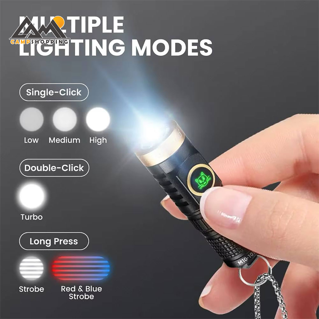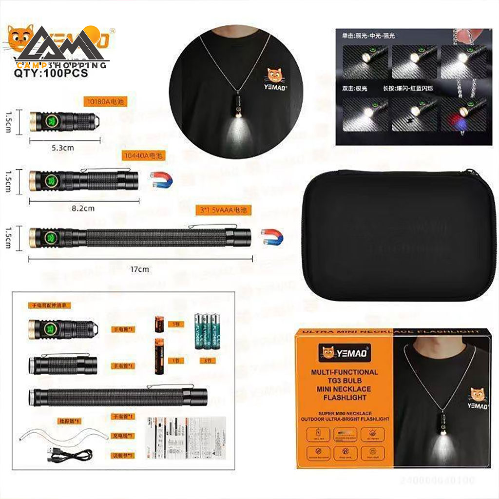 چراغ قوه YEMAO مدل YM-M10 با بدنه آلومینیومی، نور تا 700 لومن، شارژ Type-C و استاندارد IP55، مناسب کمپینگ و استفاده روزمره.