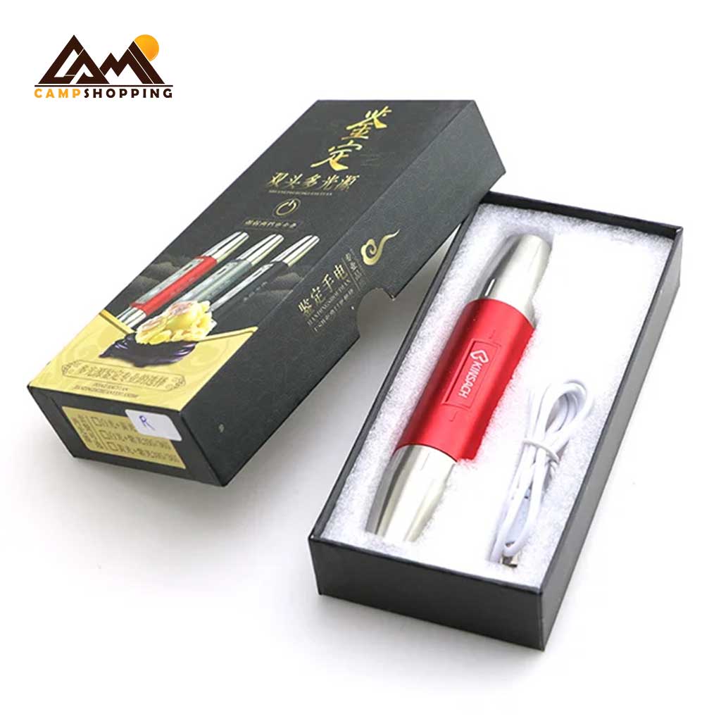چراغ قوه یووی کین ساچ یک محصول بی نظیر می باشد که دارای کاربردهای بسیار جالب است. چراغ قوه یووی KINSACH دارای جنس بدنه آلیاژ آلومینیوم و مقاوم در برابر ضربه می باشد. این چراغ قوه یووی از 4 لامپ تشکیل شده است و این چهار لامپ با دو عدد دکمه پاور قابل روشن و خاموش شدن می باشد. یک قسمت از چراغ قوه دارای دو لامپ به رنگ های سفید و زرد می باشد که هرکدام دارای دو حالت نوردهی قوی و ضعیف است و قسمت دیگر چراغ قوه دارای لامپ یووی می باشد که کاربردهایی چون: تشخیص اسکناس تقلبی، پیداکردن حشرات و جانوران موذی مثل عقرب و… می باشد. منبع تغذیه چراغ قوه یووی کین ساچ توسط کابل یو اس بی صورت می گیرد.