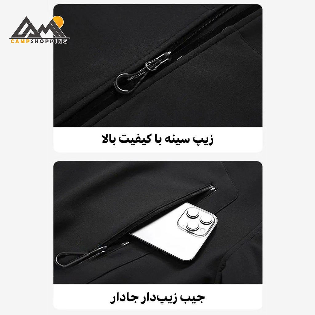 - طراحی جیب ها: جیب سینه زیپی + جیبهای جانبی زیپی