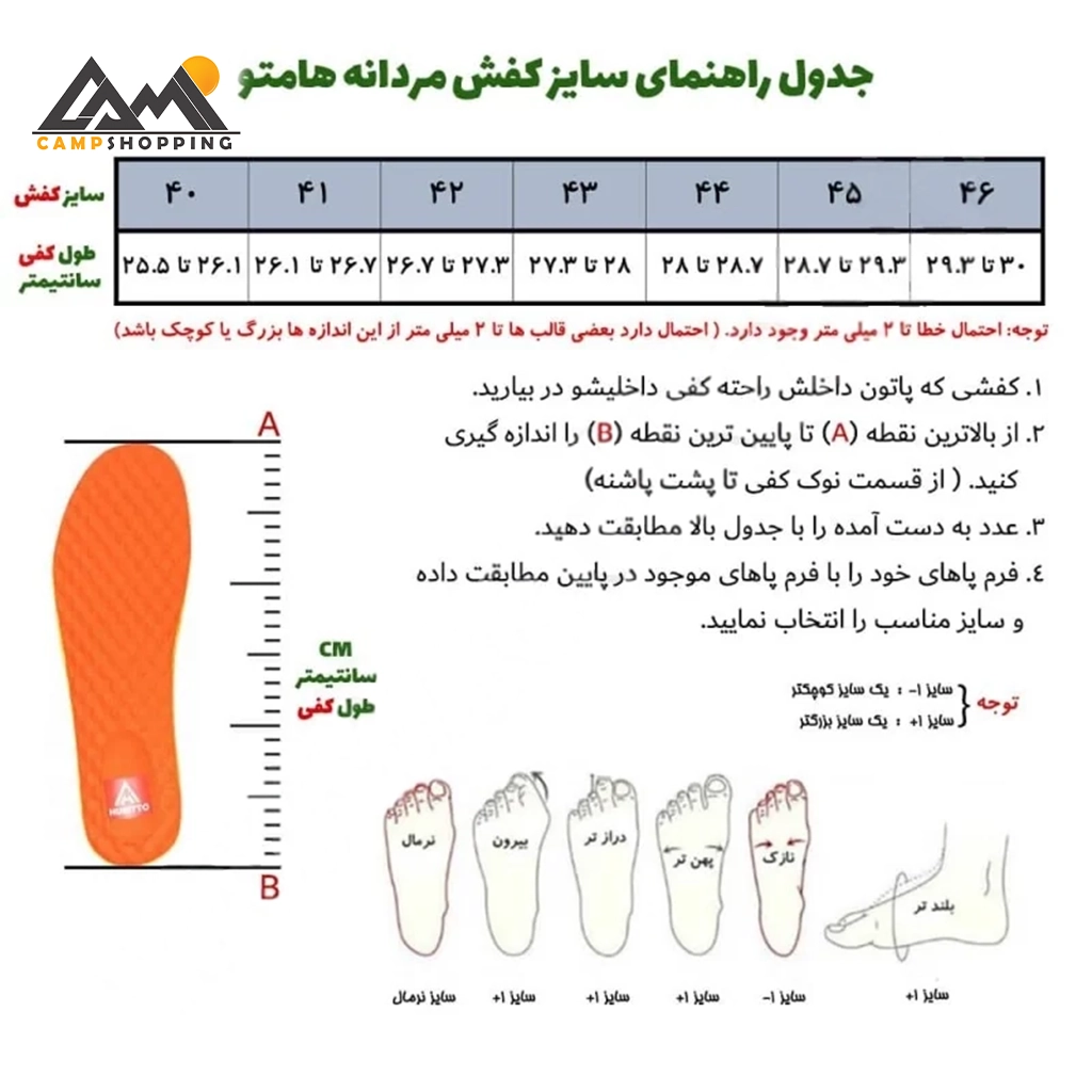 یکی از محصولات برند هامتو کفش است. کفش های تولیدی این برند از طراحی زیبا به همراه دوام و استحکام بالایی برخوردار هستند. این ویژگی ها به همراه قیمت مناسب موجب شده است که هامتو در بین برندهای فضای باز جزء پرفروش ترین های بازار باشد. نوع طراحی کفش های هامتو به گونه ای است که علاوه بر طبیعت، مناسب استفاده های شهری نیز هستند.