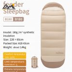 کیسهخواب B180 با وزن 1.4 کیلوگرم و سایز بستهشده 20×43 سانتیمتر بهراحتی در کولهپشتی جای میگیرد و برای کمپینگ، سفرهای جادهای، طبیعتگردی و حتی استفاده خانوادگی مناسب است. همچنین فضای کافی برای استفاده کودکان بالای 3 سال فراهم میکند.