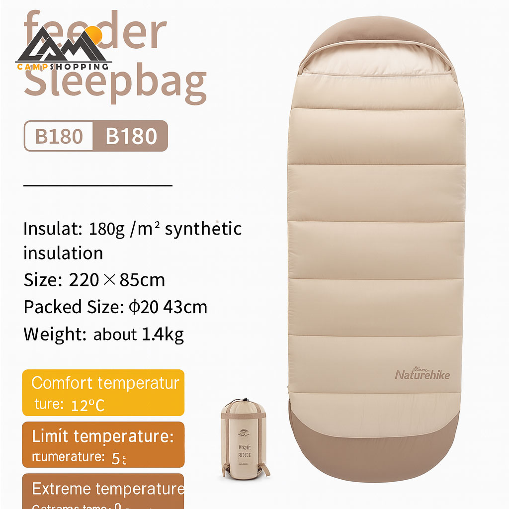 کیسهخواب نچرهایک مدل B180 یکی از پرفروشترین مدلهای کمپینگ سه فصل Naturehike است که ترکیبی از وزن مناسب، حجم جمعوجور و گرمایش مطلوب را ارائه میدهد. این مدل با ساختار مومیاییشکل و داشتن کلاهک گرمکننده طراحی شده تا در شرایط سرد نیز بهترین عملکرد را داشته باشد.